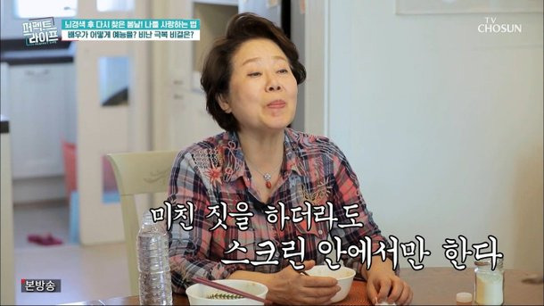 선우용여가 진솔한 이야기를 나누는 장면입니다.