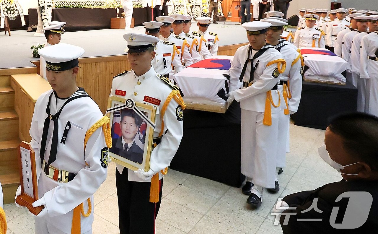 이날 영결식에서 양용모 해군참모총장은 순직 장병들의 이름을 하나하나 부르며 그들의 희생을 기렸습니다. 참석한 모든 이들은 고인의 명복을 비는 동안 깊은 슬픔과 존경의 마음을 담아 묵념을 올렸습니다.