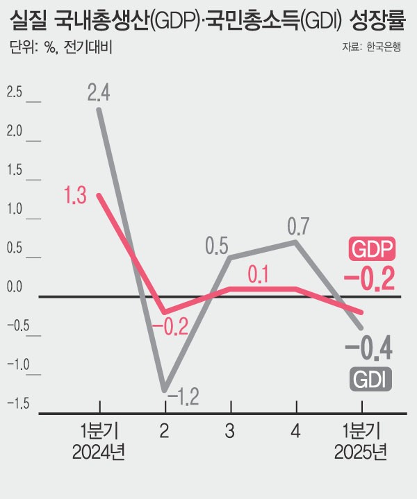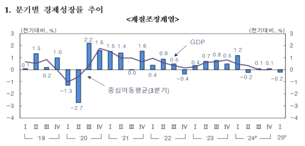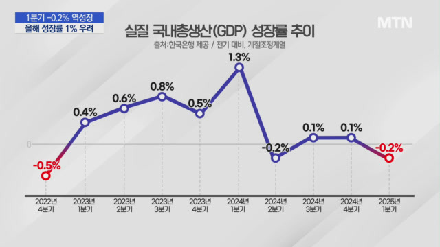 지난해 1분기에는 1.2%의 성장률을 기록했으나, 올해 1분기에는 -0.2%로 급락했습니다. 이러한 변화는 글로벌 경제 불확실성과 내수 부진이 복합적으로 작용한 결과로 분석됩니다. 특히, 지난해 2분기 이후 GDP 성장률은 '-0.2%→0.1%→0.1%→-0.2%'로 이어지며 저성장과 마이너스 성장이 지속되고 있습니다.