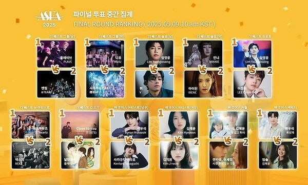 이 이미지는 2025 ASIA 어워드의 최종 순위를 보여주고 있으며, 변우석의 경쟁력 있는 입지를 다시 한번 강조하고 있습니다.