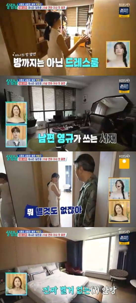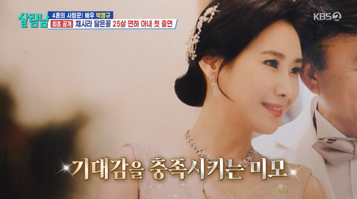 14일 방송된 KBS2 '살림하는 남자들 시즌2'에서는 박영규가 아내 이윤주 씨와 함께 사는 집을 공개했습니다. 이윤주 씨는 드레스룸에서 한참 동안 나오지 않으며 박영규를 향해 "당신이 너무 오바해놨잖아"라고 말하는 모습이 인상적이었습니다. 이 장면은 두 사람의 자연스러운 일상과 사랑스러운 모습을 보여주었습니다.