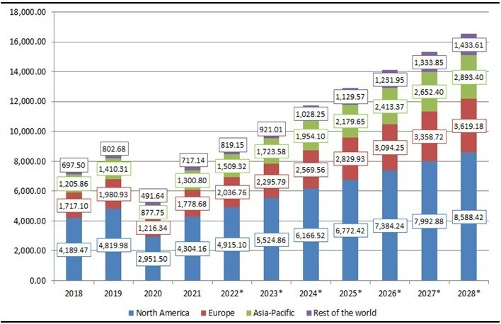지역별로는 북미, 유럽, 아시아 태평양 등에서 고르게 성장세를 보이고 있으며, 특히 아시아 태평양 지역에서의 성장이 두드러지고 있습니다. 각 지역의 시장 현황은 다음과 같습니다.