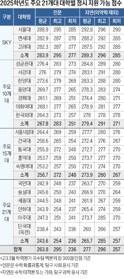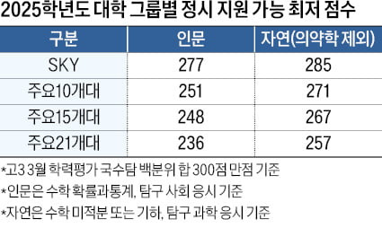 2025학년도 대학 입시에서 각 대학의 합격 점수는 매우 중요한 요소입니다. 예를 들어, SKY 대학의 경우 인문계는 277점, 자연계는 285점이 필요합니다.