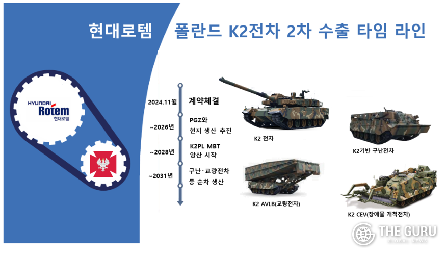 2025년 8월 1일, 현대로템은 폴란드 군비청과 약 9조 원(65억 달러) 규모의 K2 전차 2차 이행계약을 체결했습니다. 이 계약은 폴란드에 K2 전차 180대와 지원차량 81대를 포함하며, 폴란드형 K2 전차(K2PL MBT) 64대와 K2 계열 전차 81대도 공급될 예정입니다. 이런 계약은 폴란드의 군사력 강화를 위한 중요한 단계로, 한국과 폴란드 간의 방산 분야 협력이 새로운 국면에 접어드는 계기가 될 것입니다.