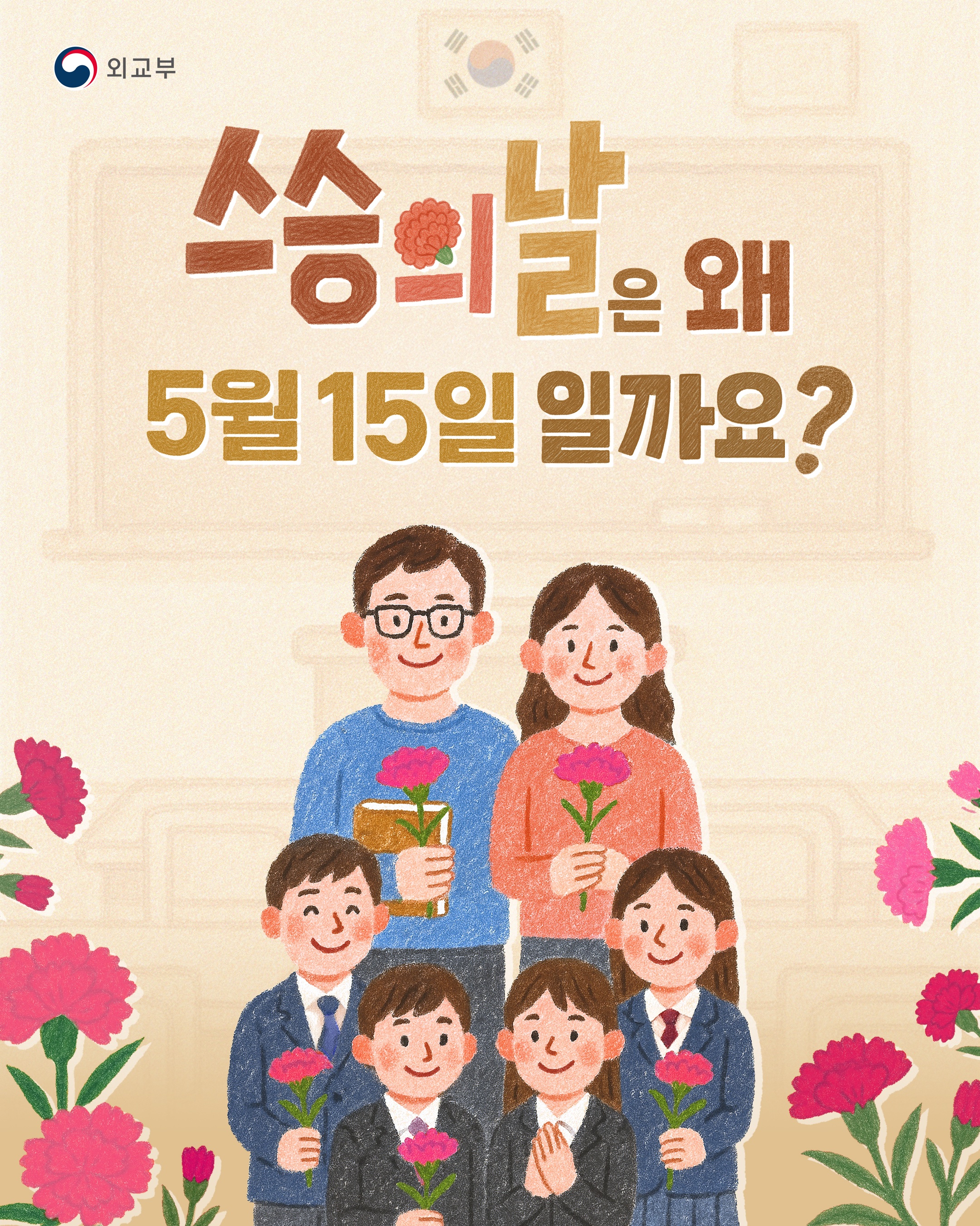 스승의 날은 왜 5월 15일로 정해졌을까. 정답은 세종대왕이 나신 날이기 때문이다. 하지만 국민 10명 중 8명은 이 사실을 모르고 있었다.문화체육관광부는 국어문화원연합회와 함께 지난해 국가
